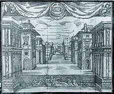 Bühnenbild zu »Il Granchio«, unbekannter Meister des 16. Jahrhunderts, Biblioteca Nazionale Centrale Florenz, Palat. 2.9.2.48