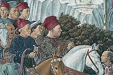 Nella cultura fiorentina le feste tradizionali, che avevano sempre rivestito una grande importanza, ebbero un ulteriore impulso con la famiglia de’ Medici. Già Lorenzo il Magnifico (1449 – 1492), autore egli stesso di un dramma liturgico e delle ‘canzoni a ballo’ pubblicate in collaborazione con l‘umanista Poliziano, suo grande amico, volle nobilitare le feste esistenti di origine popolare come il carnevale e la nascita della primavera (il maggio), cercando contemporaneamente di legittimare attraverso la popolarità di queste manifestazioni il governo della sua famiglia, che ‘regnava’ senza un incarico ufficiale. Alcune feste erano particolarmente care alla famiglia de’ Medici quali l’Epifania e la ricorrenza di San Giovanni Battista, patrono di Firenze. Specialmente in occasione della prima di queste feste veniva fatto sfilare il sontuoso Corteo dei Magi, una grande processione che, come in occasione dell’ingresso trionfale degli ospiti più importanti della Città, percorreva le vie cittadine seguendo un itinerario che comportava anche il passaggio davanti al palazzo della famiglia in Via Larga. Gli opulenti banchetti in occasione delle nozze di membri della famiglia dei Medici venivano accompagnati da rappresentazioni musicali e teatrali, dalle quali si è sviluppata la scenografia prospettica teatrale e, attraverso i cosiddetti ‘intermedi’, è nato il melodramma.